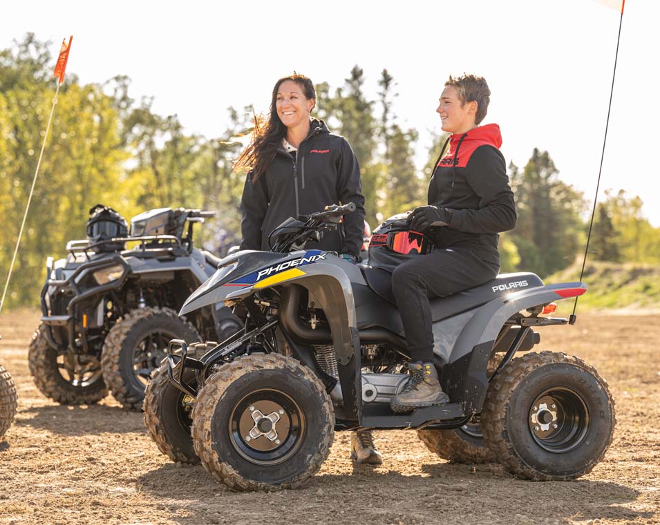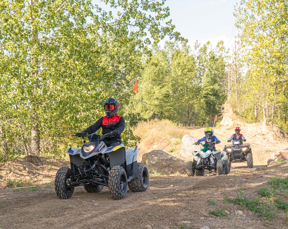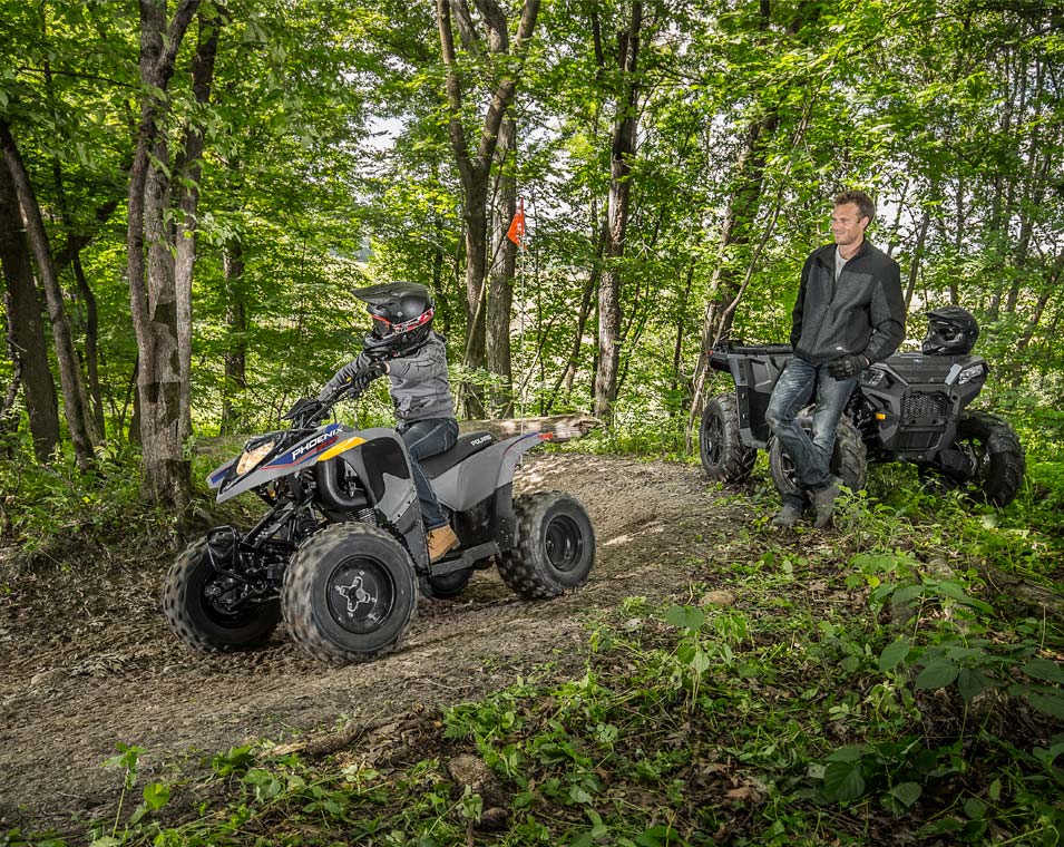 Mit einem 196-cm³-4-Takt-Motor und einem leicht einstellbaren Geschwindigkeitsbegrenzer können jüngere Fahrer mit ihrem Quad mitwachsen. Hergestellt für Fahrer ab 14 Jahren.
